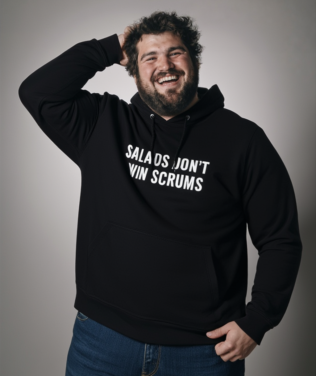 Avec ce sweat à capuche rugby « Salads Don’t Win Scrums », tu portes haut et fort les valeurs du rugby. Que tu sois pilier, seconde ligne ou simple amateur de bonne 3ème mi-temps, ce hoodie est ton allié.
