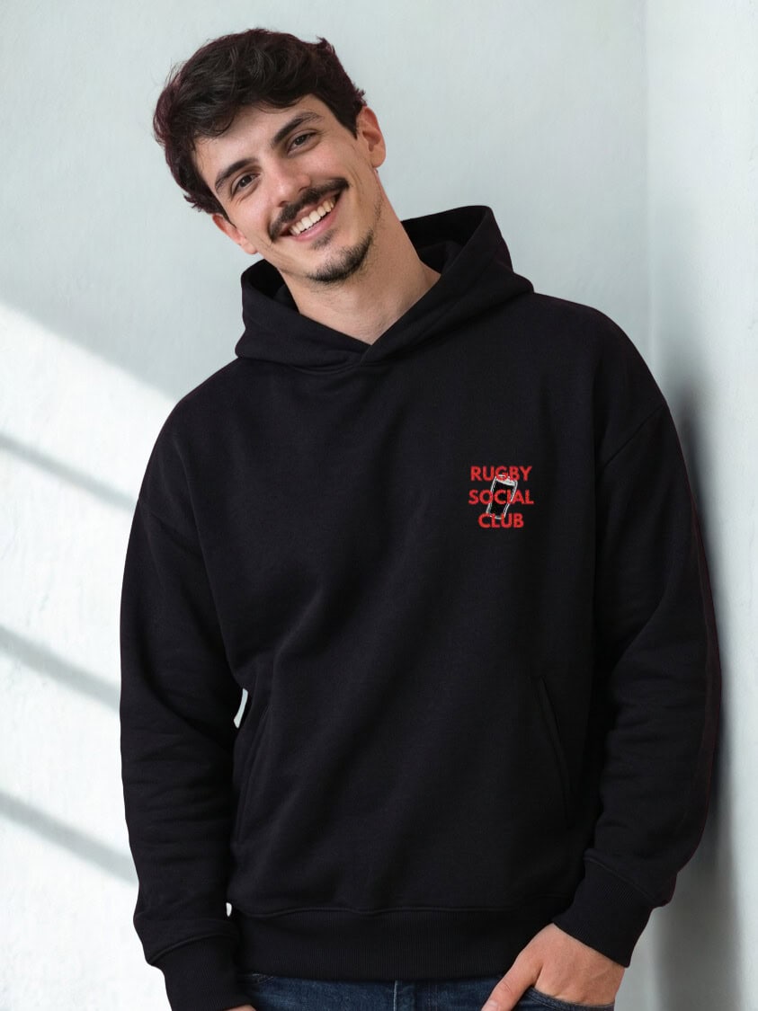 Le rugby est un langage universel. Que tu sois à l’autre bout du monde ou au comptoir de ton club, parler rugby c’est la garantie de fraterniser avec un nouvel ami. Ce sweat à capuche oversize Rugby Social Club rend hommage à cette fraternité, faite d’anecdotes de matchs, de chants, de récits, de chambrage et de cette solidarité unique qui naît dans la camaraderie.