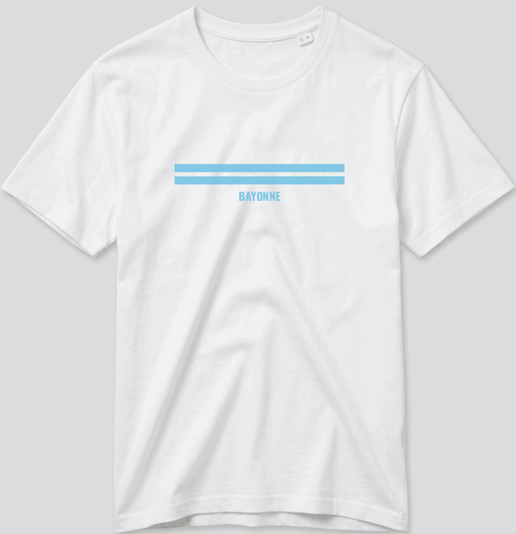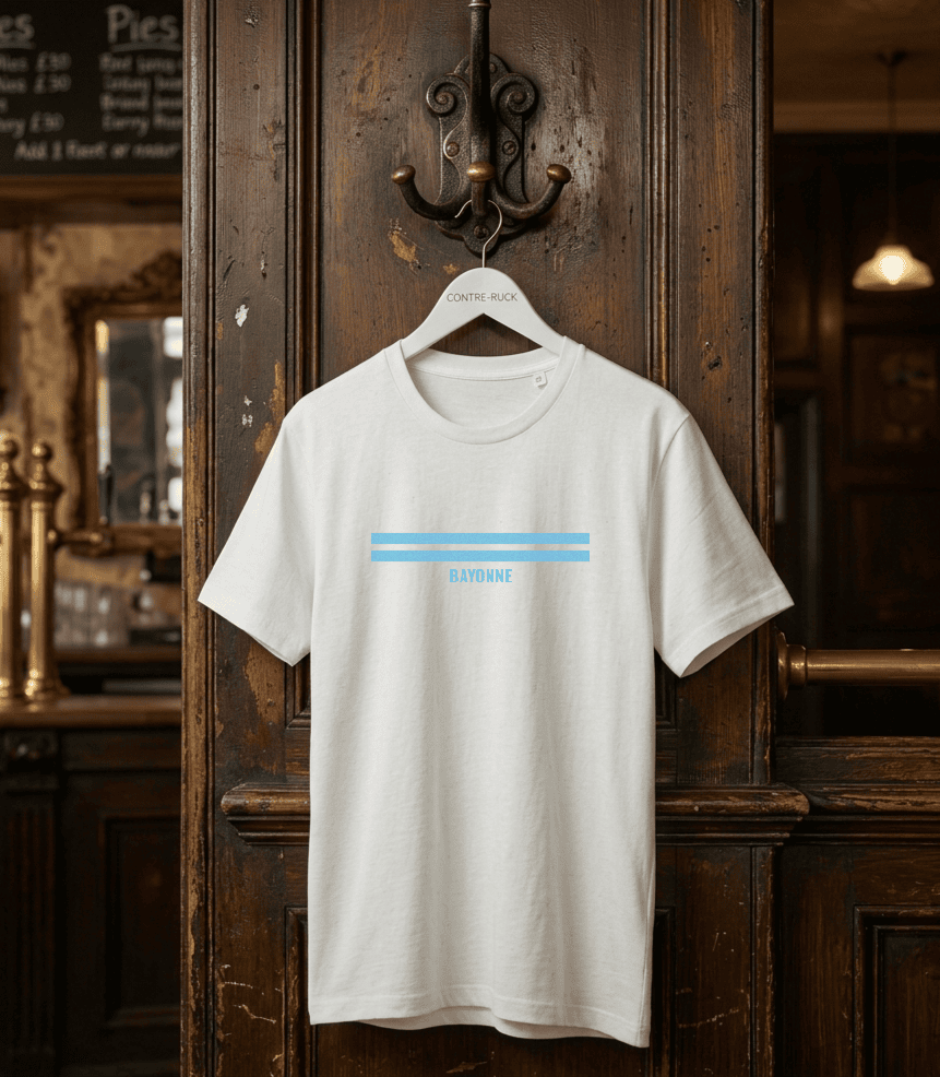 Rendez hommage à la tradition bayonnaise du rugby avec ce design épuré. Les couleurs ciel et blanc offrent une élégance intemporelle pour tous les supporters de l’Aviron Bayonnais. Parfait pour entonner la Peña Baiona avec classe.