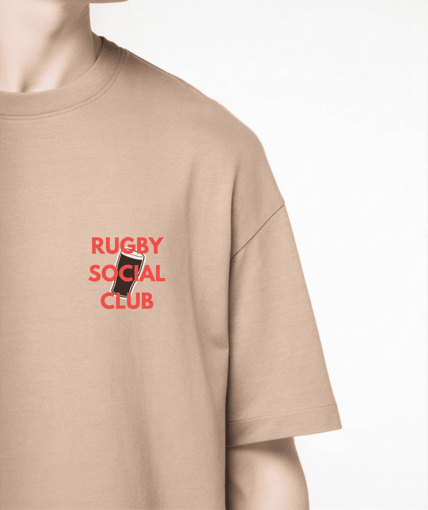 Le rugby est un langage universel. Que tu sois à l’autre bout du monde ou au comptoir de ton village, parler rugby c’est la garantie de fraterniser avec un nouvel ami. Le t-shirt oversize Rugby Social Club rend hommage à cette fraternité, faite d’anecdotes de matchs, de chants, de récits, de chambrage et de cette solidarité unique qui naît dans la camaraderie.